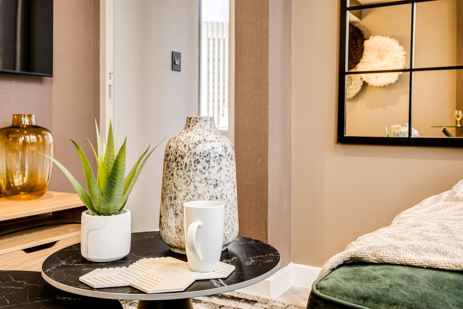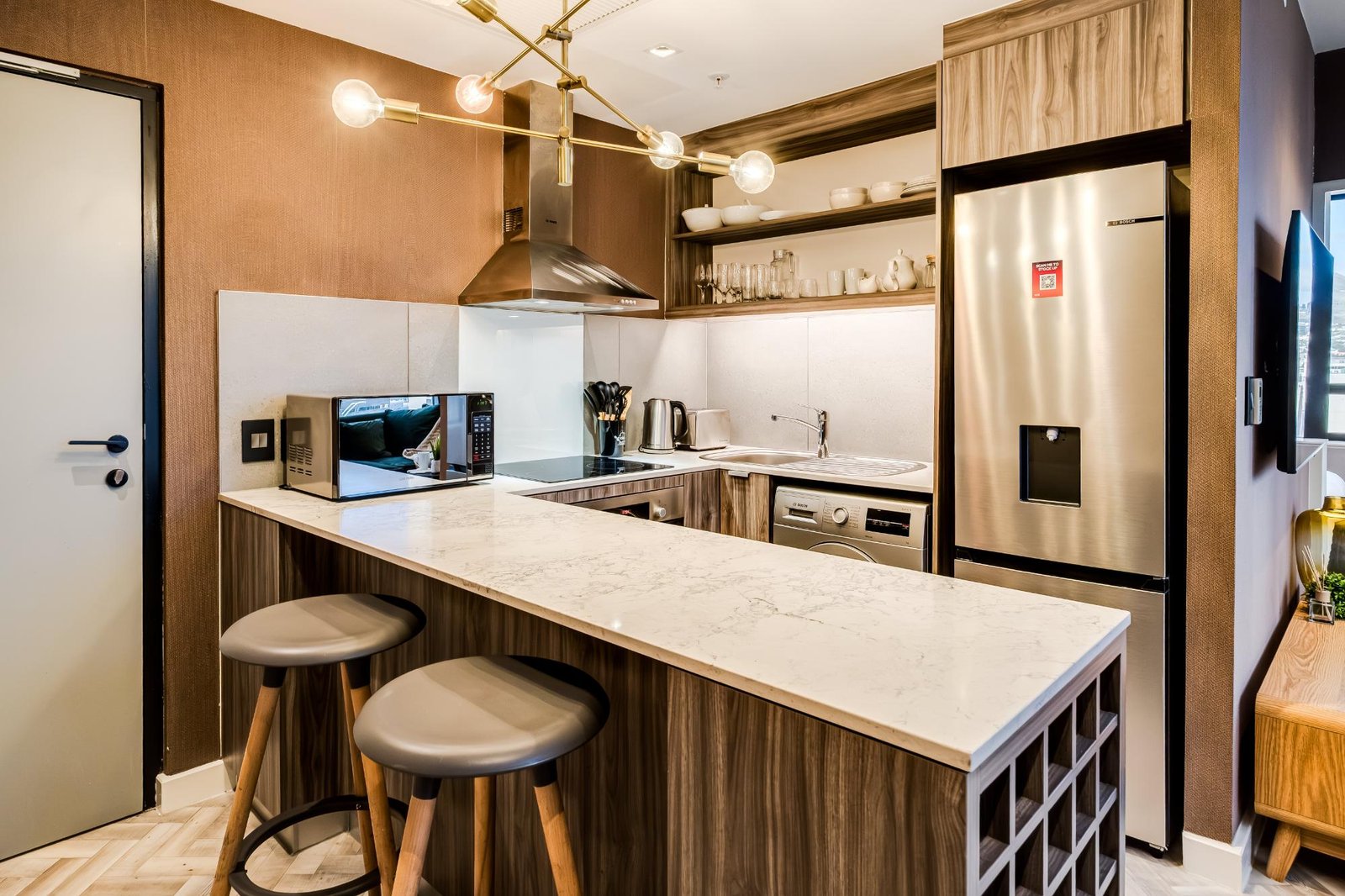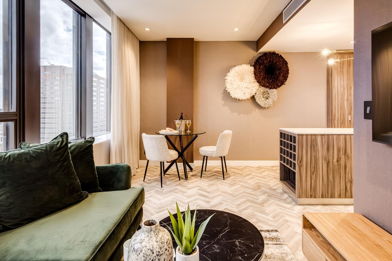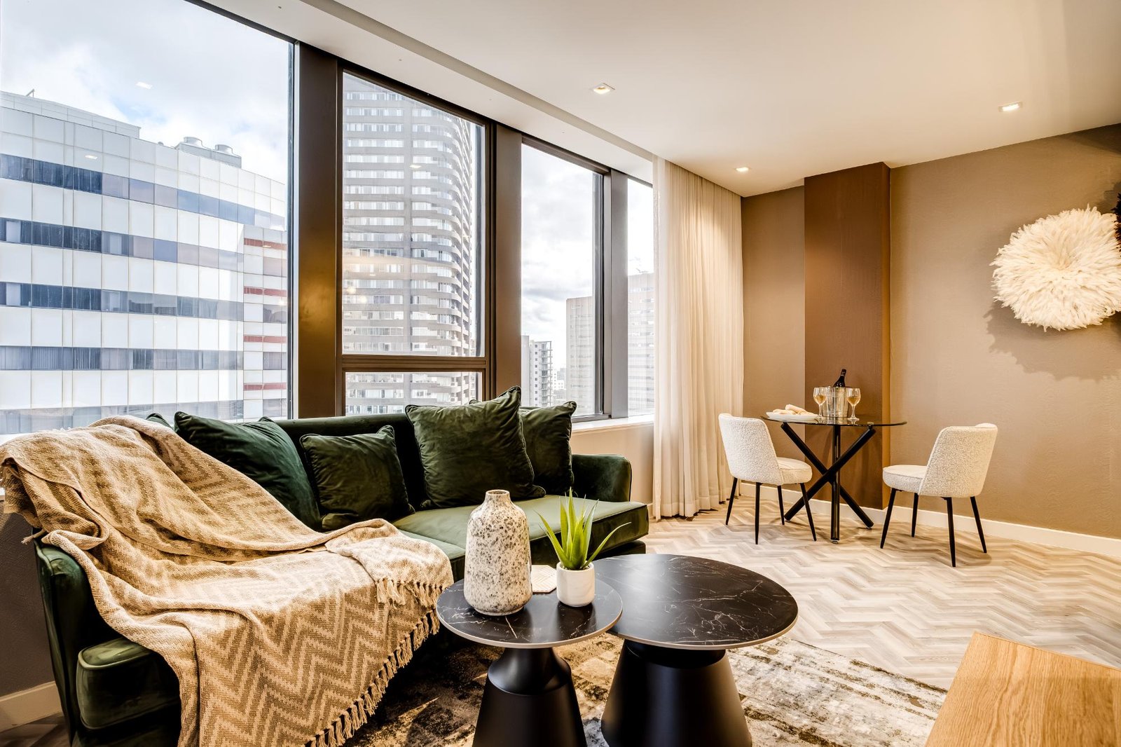Set high above the vibrant streets of Cape Town’s city centre, City Suite 1601 offers a refined escape ideal for business travellers and couples. The apartment is thoughtfully designed for comfort and ease, with a sleek open-plan living and dining area featuring central air conditioning, a TV, and seating for two. The kitchen includes an electric hob, Nespresso machine, washer, and a breakfast bar for two. The bedroom, with a queen bed and an ensuite, enjoys views of Table Mountain and the city skyline. With a doorman on site and full loadshedding protection, this well-located suite provides a calm, uninterrupted stay in the heart of Cape Town’s business and cultural district.