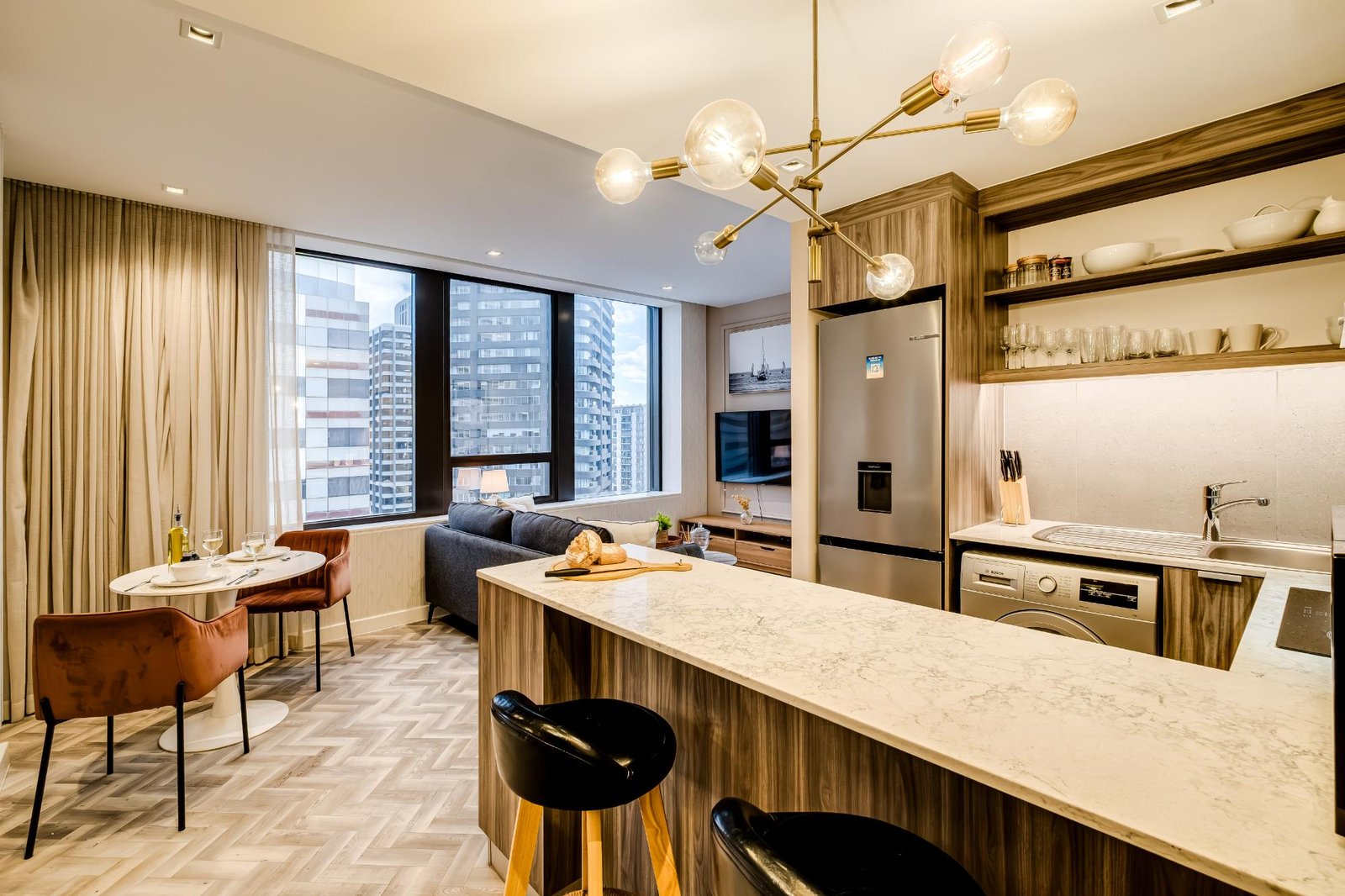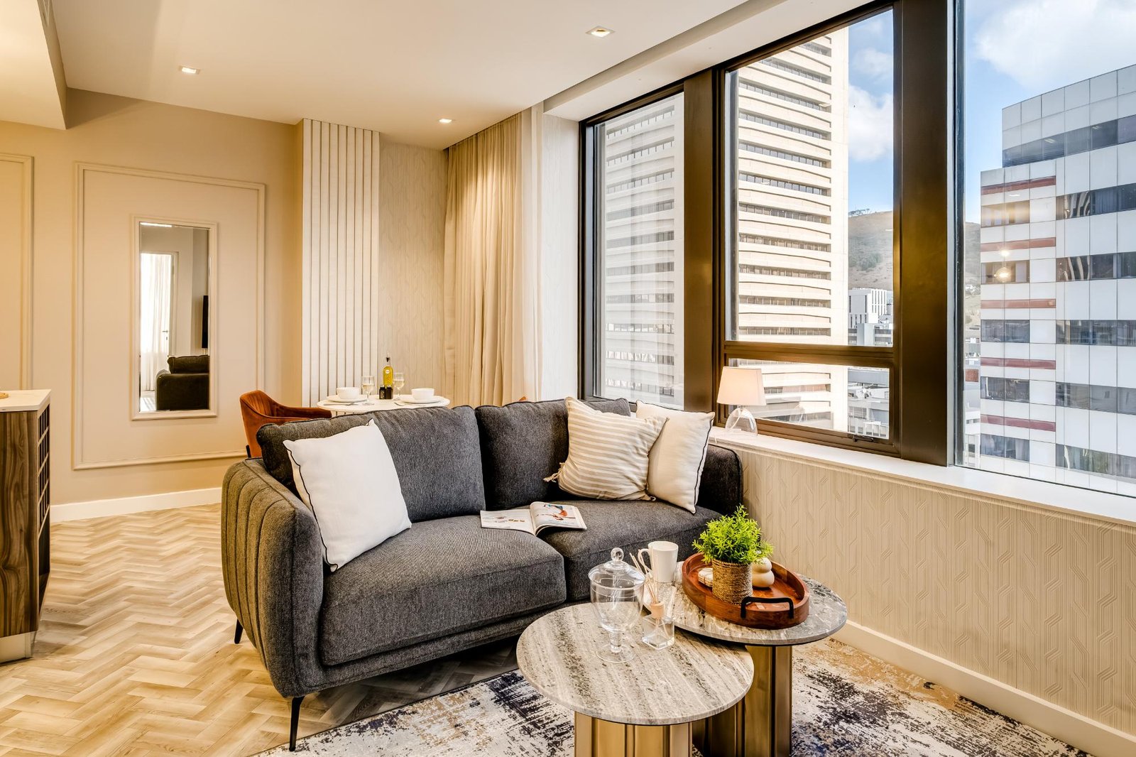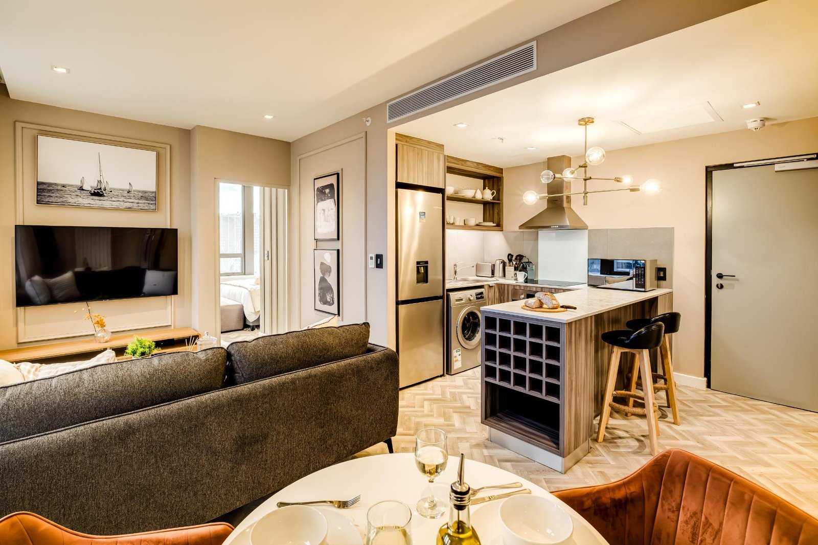 Located in the heart of Cape Town’s city centre, City Suite 1602 offers a calm and practical base for business travellers and couples. Designed for comfort and convenience, the apartment features a living area with seating for two, a TV, and city views. The dining space connects to a kitchen with a glass stove hob, dishwasher, washer/dryer combo, and Nespresso machine. The bedroom includes a queen bed and an ensuite bathroom with a shower and vanity. With a doorman and uninterrupted power, this city-centre apartment is well-positioned for work or leisure.