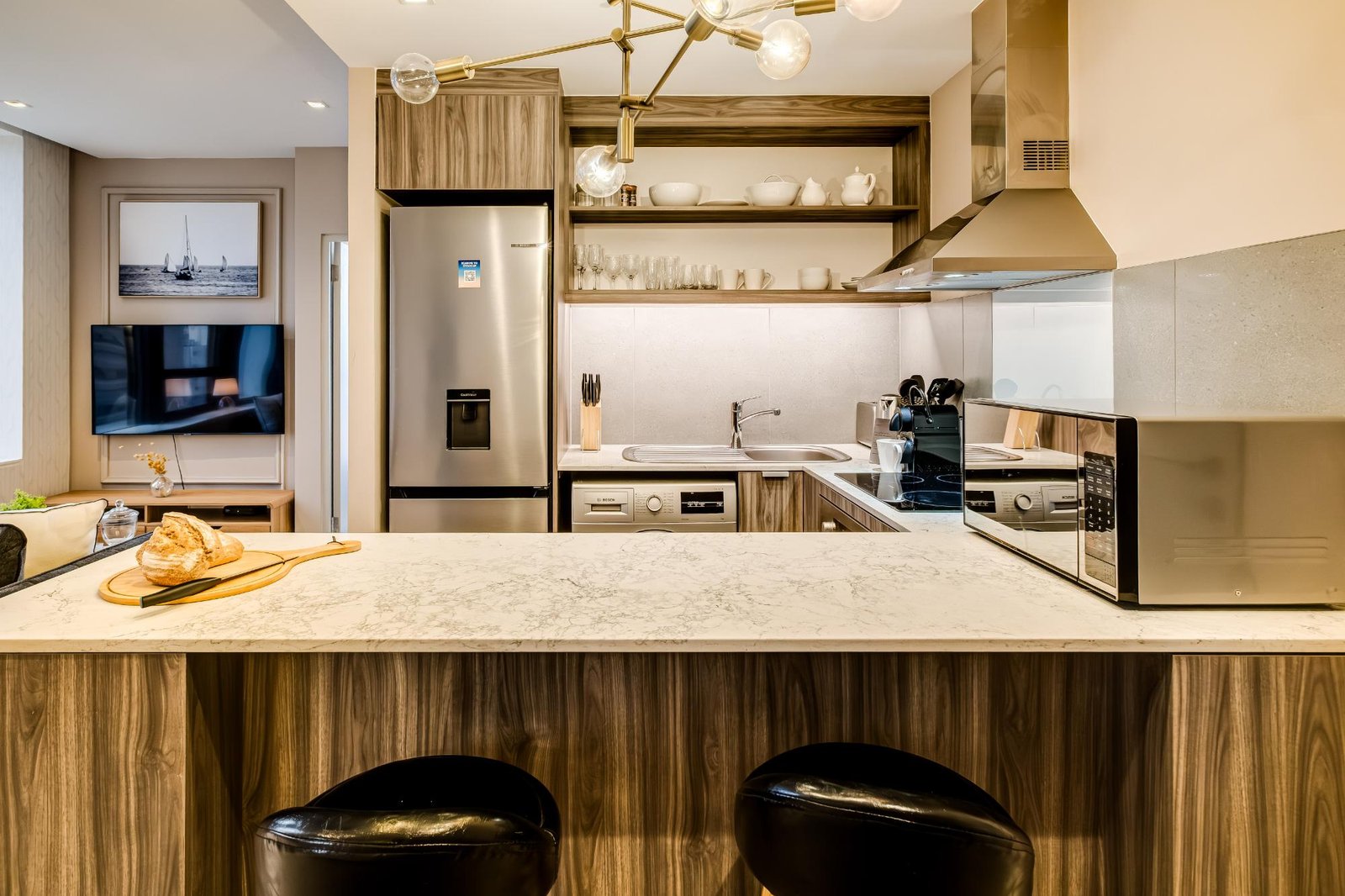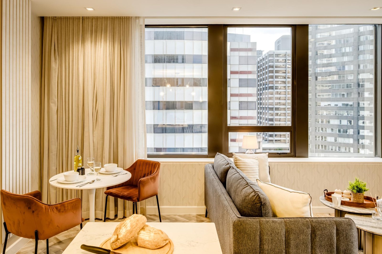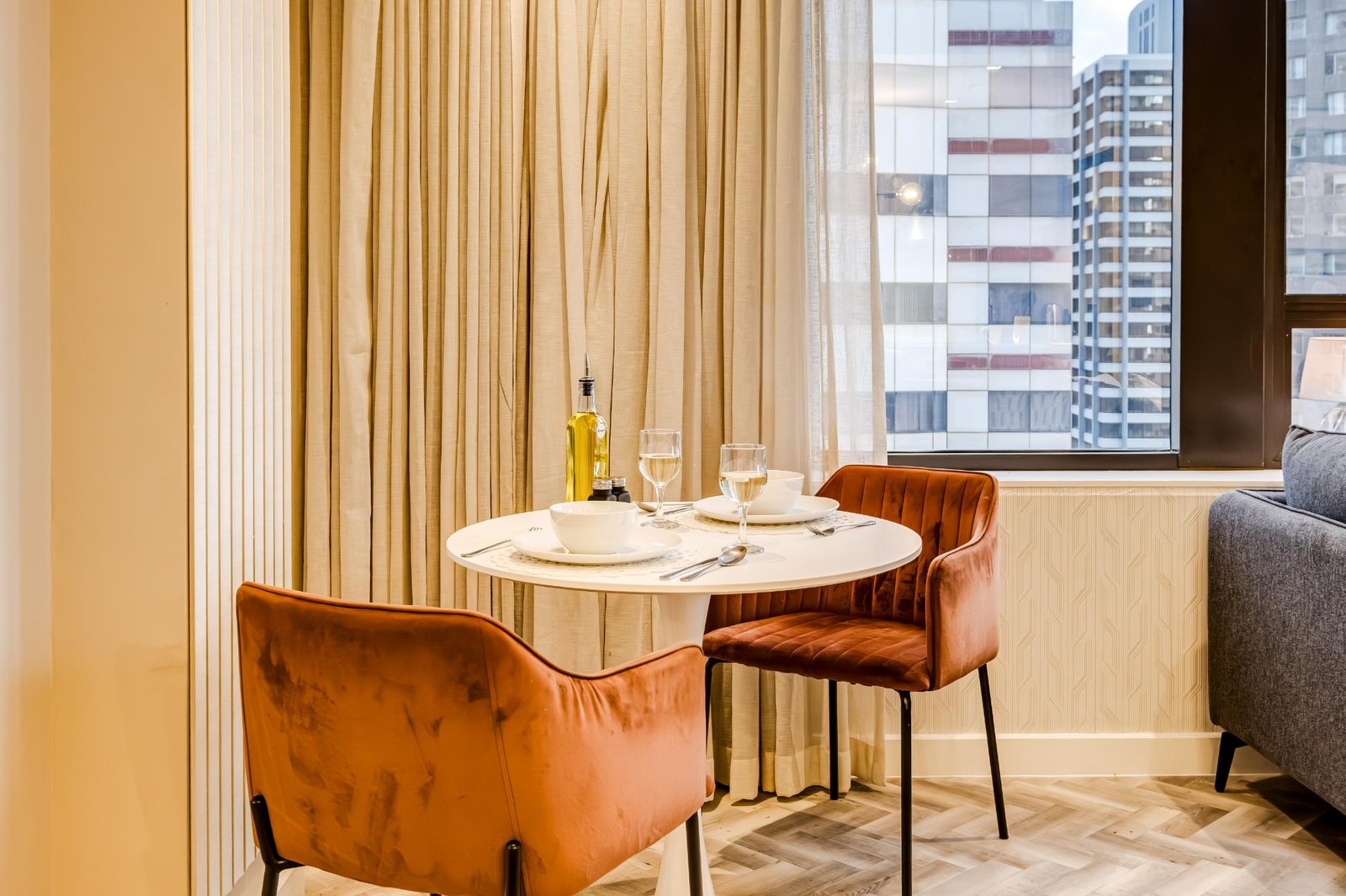 Located in the heart of Cape Town’s city centre, City Suite 1602 offers a calm and practical base for business travellers and couples. Designed for comfort and convenience, the apartment features a living area with seating for two, a TV, and city views. The dining space connects to a kitchen with a glass stove hob, dishwasher, washer/dryer combo, and Nespresso machine. The bedroom includes a queen bed and an ensuite bathroom with a shower and vanity. With a doorman and uninterrupted power, this city-centre apartment is well-positioned for work or leisure.