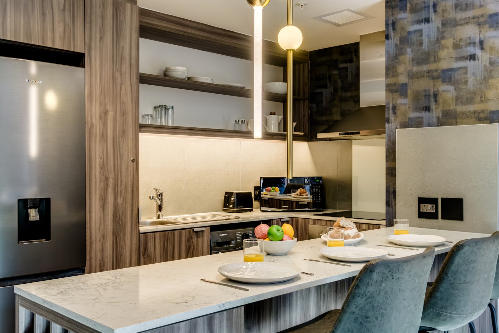 The kitchen is equipped with an electric hob, a washer, and a breakfast bar for three, ideal for meals and casual gatherings. Centralized air conditioning throughout ensures comfort, while building security provides peace of mind. Being loadshedding proof adds to the convenience, making City Suite 904 a standout choice in one of Cape Town’s prime neighborhoods. This apartment offers a blend of classic style and modern amenities for a pleasant stay.