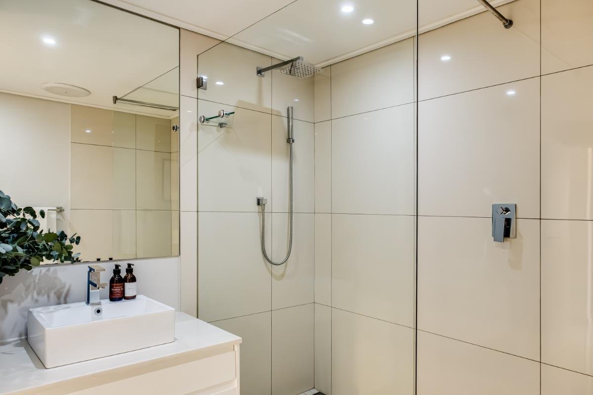 Hafen Views offers a refined stay in the sought-after suburb of De Waterkant. This modern apartment features stunning views of the city, harbour, and sea, providing a peaceful backdrop for your stay. The spacious main bedroom includes a king-sized bed, air conditioning, and access to a balcony where you can enjoy the view. The ensuite bathroom has a bath, shower, and double vanity. Two additional queen-sized bedrooms share a bathroom with a shower and single vanity.