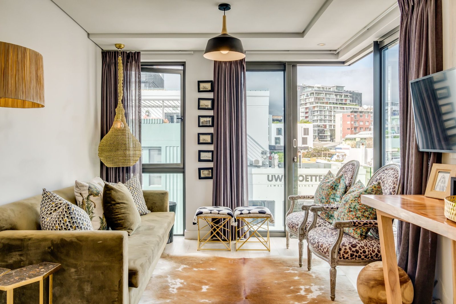 Located in a secure building in De Waterkant, this apartment has 2 cosy bedrooms and an open-plan living area.