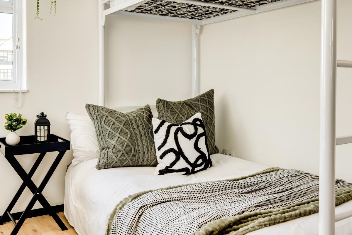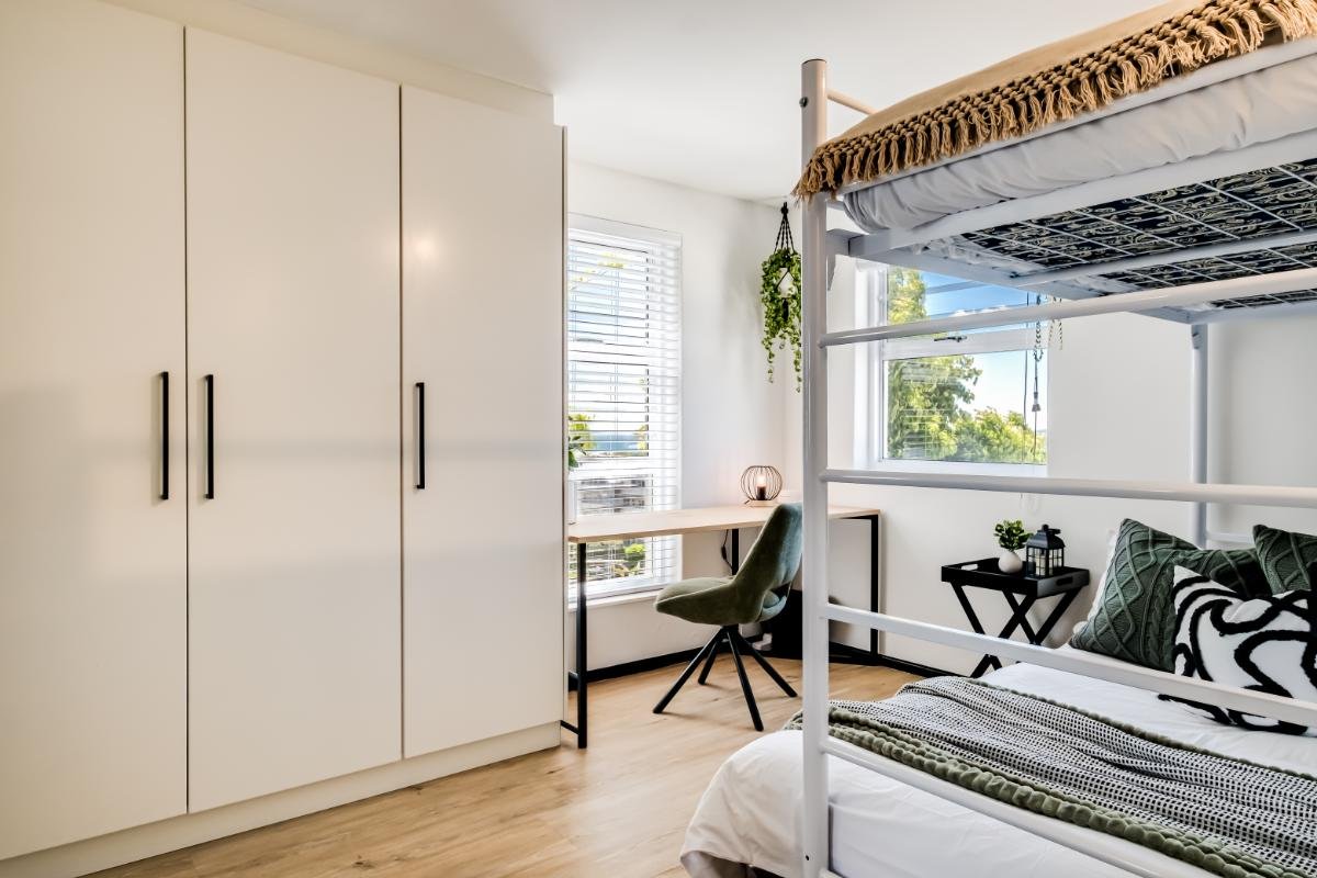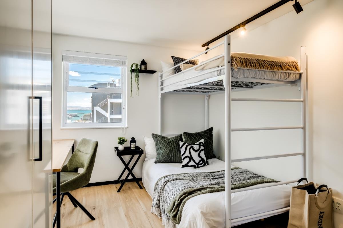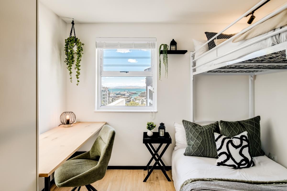 Nestled in the vibrant Green Point suburb, Views for Days offers a stylish retreat with a touch of African charm. This contemporary apartment features a main bedroom with a comfortable queen bed and air conditioning, as well as a second bedroom with unique bunk beds (single over double). Both bedrooms share a modern bathroom with a shower.