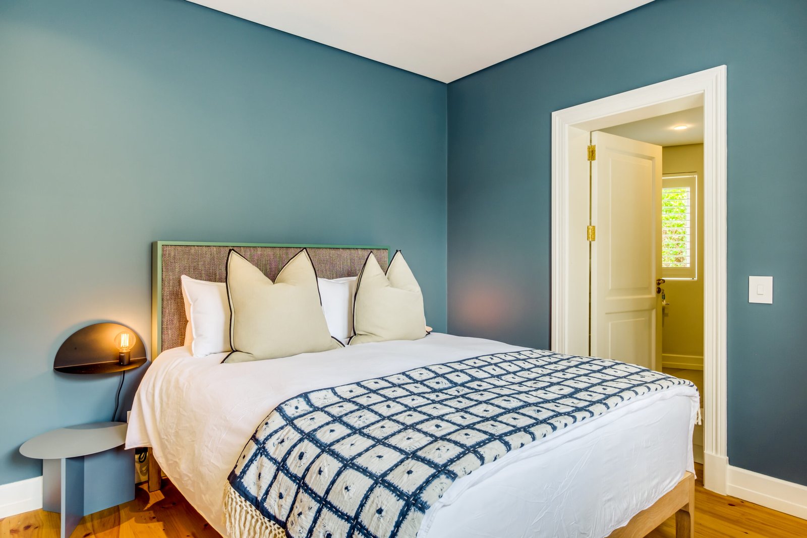 There is a main lounge with a wood-burning fireplace as well as a reading/TV nook, a study, and an open-plan dining area on the ground level. The fully equipped kitchen and separate scullery are also on this level. It’s the perfect space for entertaining or having a private family dinner.